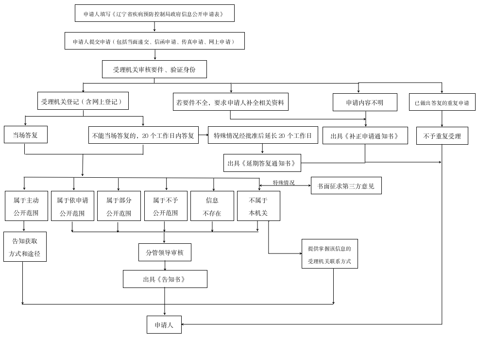 省疾控局收到申请后,将从形式上对申请的要件是否完备进行审查。对于要件不完备的申请,明确指出存在的不完备之处后予以退回,由申请人补充或更正。对于符合填写要求的《辽宁省疾病预防控制局政府信息公开申请表》,及时予以登记、受理。